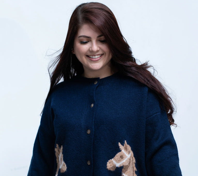 Vestido Corto con mangas largas- Café predominante con detalles en blanco